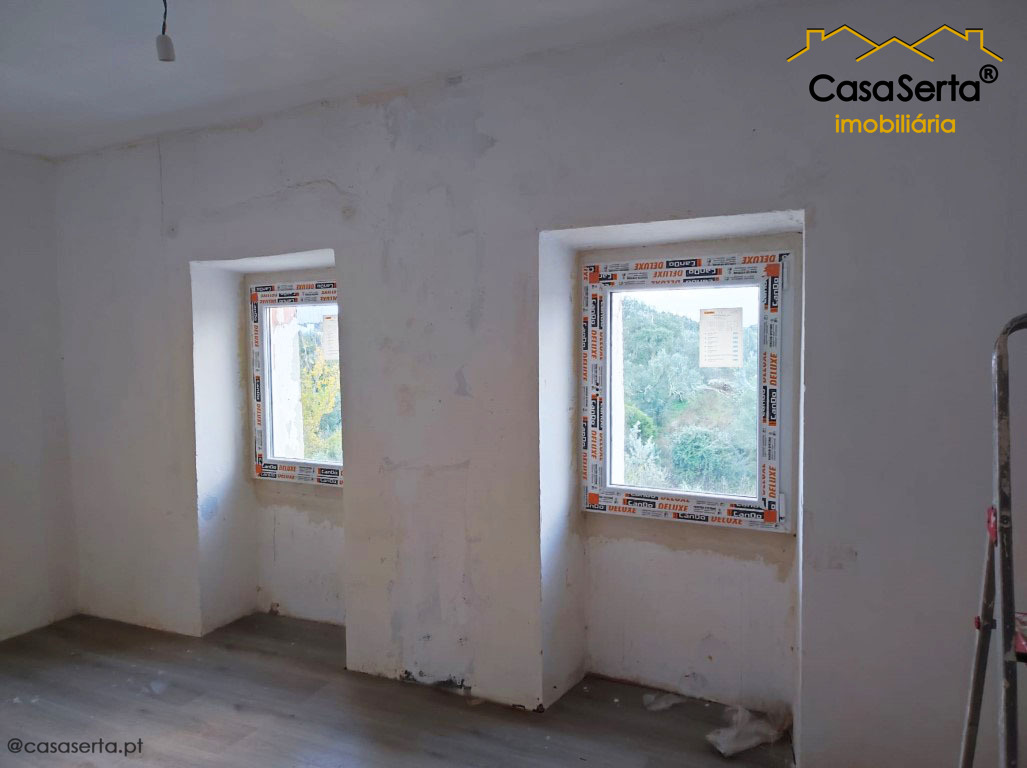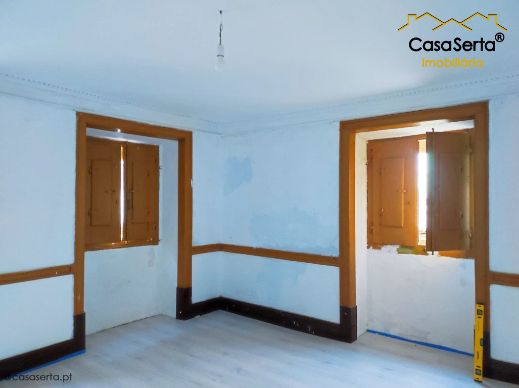 A casa de habitação, com traços bastante distintos, encontra-se em fase de reconstrução, sendo que a aquisição da mesma poderá ser feita no estado em que se encontra ou com as obras concluídas.