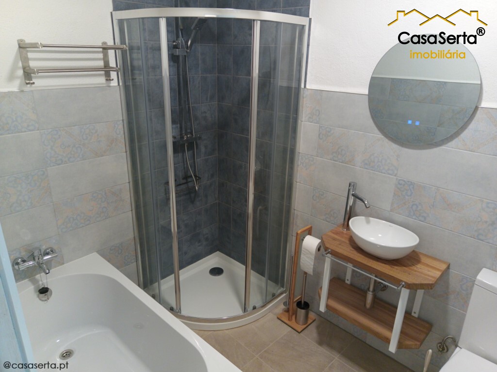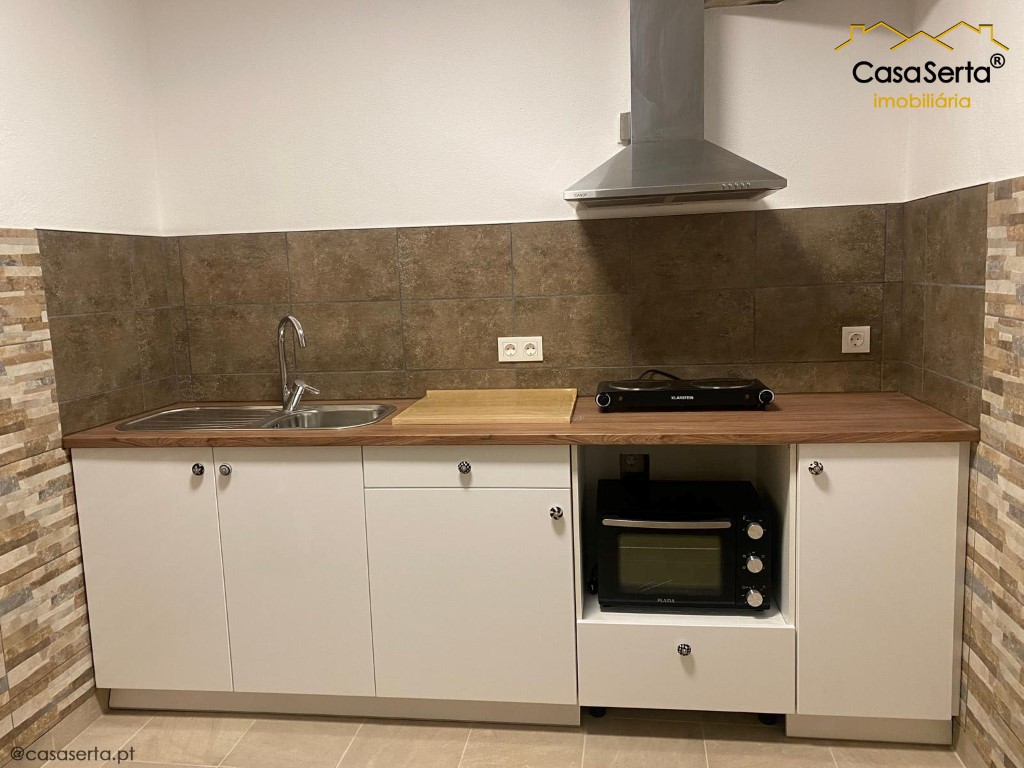 É composto por três quartos versáteis, cozinha semi-equipada, com forno e air-fryer, e casa de banho completa, equipada com poliban e banheira, prática para o dia a dia, com zona comum para a máquina de lavar.
